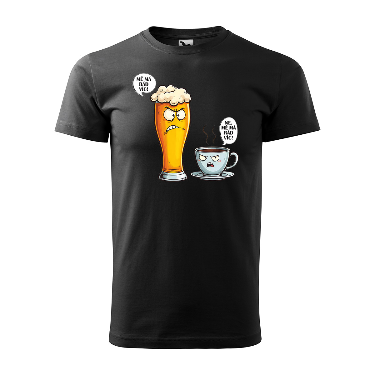 Tričko s potiskem Mě má rád víc - pivo vs. káva: černé 2XL
