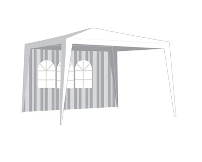 Bočnice zahradního stanu s oknem v moderním designu bílých a zelených pruhů je skvělým doplňkem, který ochrání váš párty stan před větrem, deštěm i nežádoucími pohledy. Díky praktickému oknu navíc neztratíte kontakt s okolím a zachováte dostatek přirozeného světla.