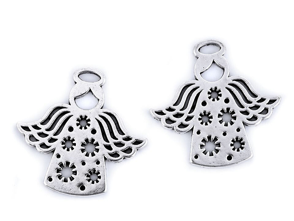 Přívěsek anděl 27x28 mm - 10 ks - 2 platina