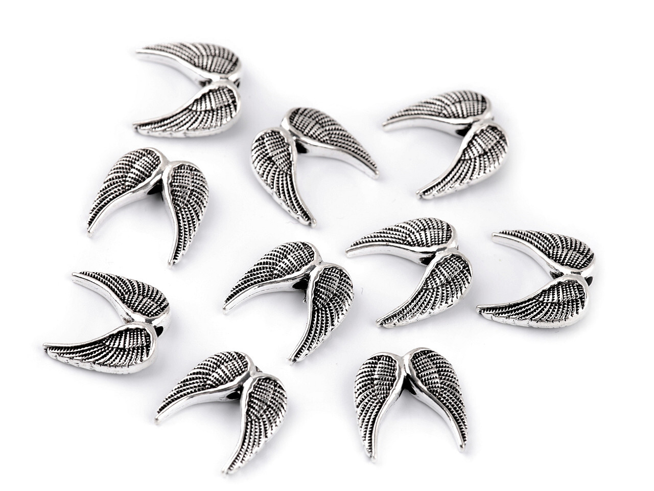 Ozdobný díl křídla 15x15 mm - 10 ks - platina