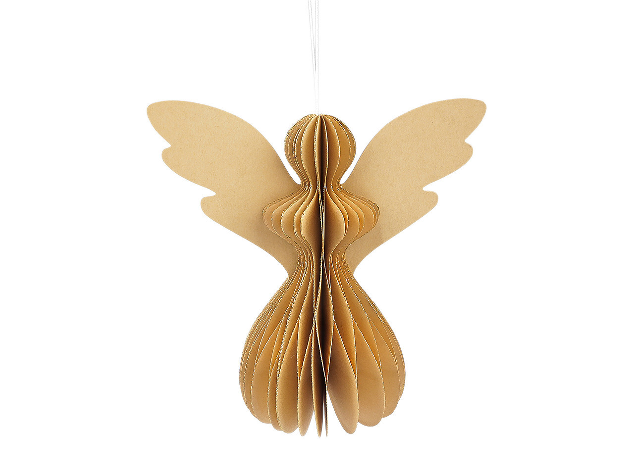 Papírový skládací anděl k zavěšení 17 cm - 1 ks - 2 přírodní stř. zlatá