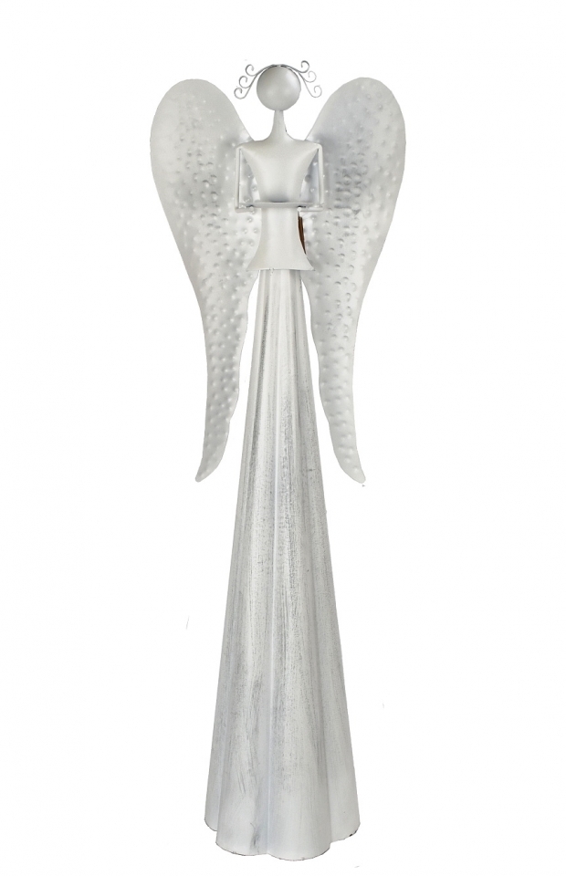 Plechový bílý anděl s kalíškem na svíčku 100 cm M