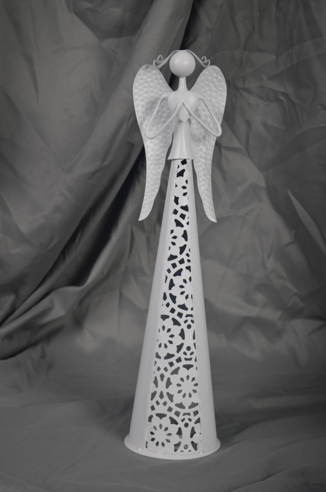 Plechový anděl bílý 40 cm na čajovou svíčku