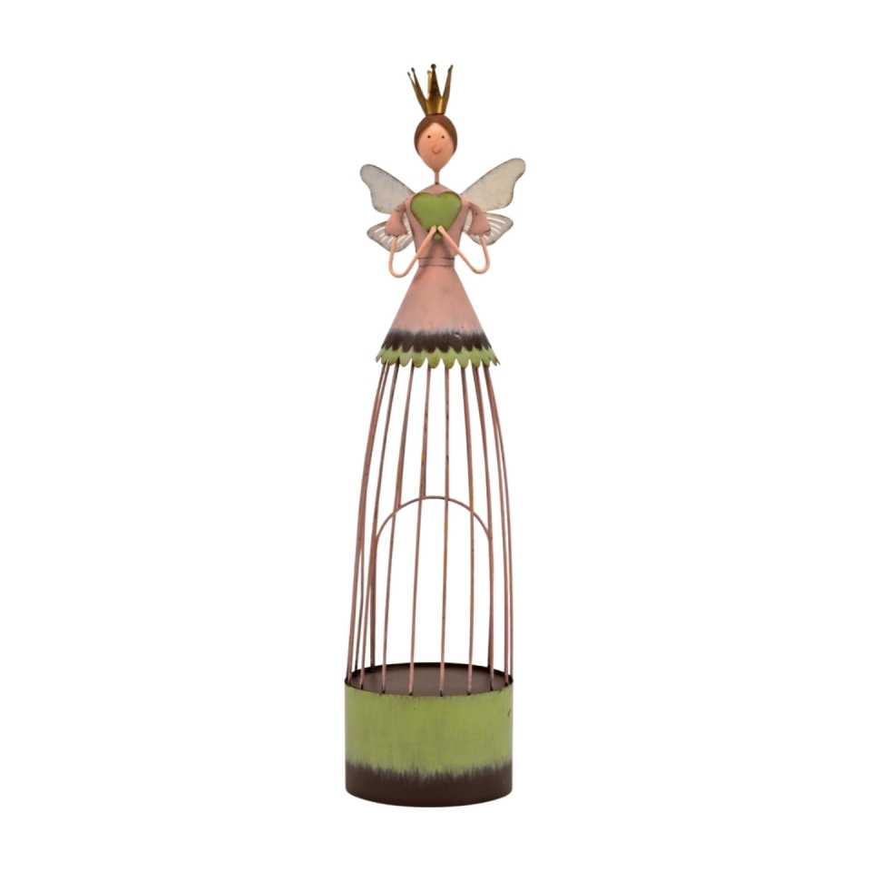 Plechový anděl na svíčku Juraj 53 cm zeleno-růžový