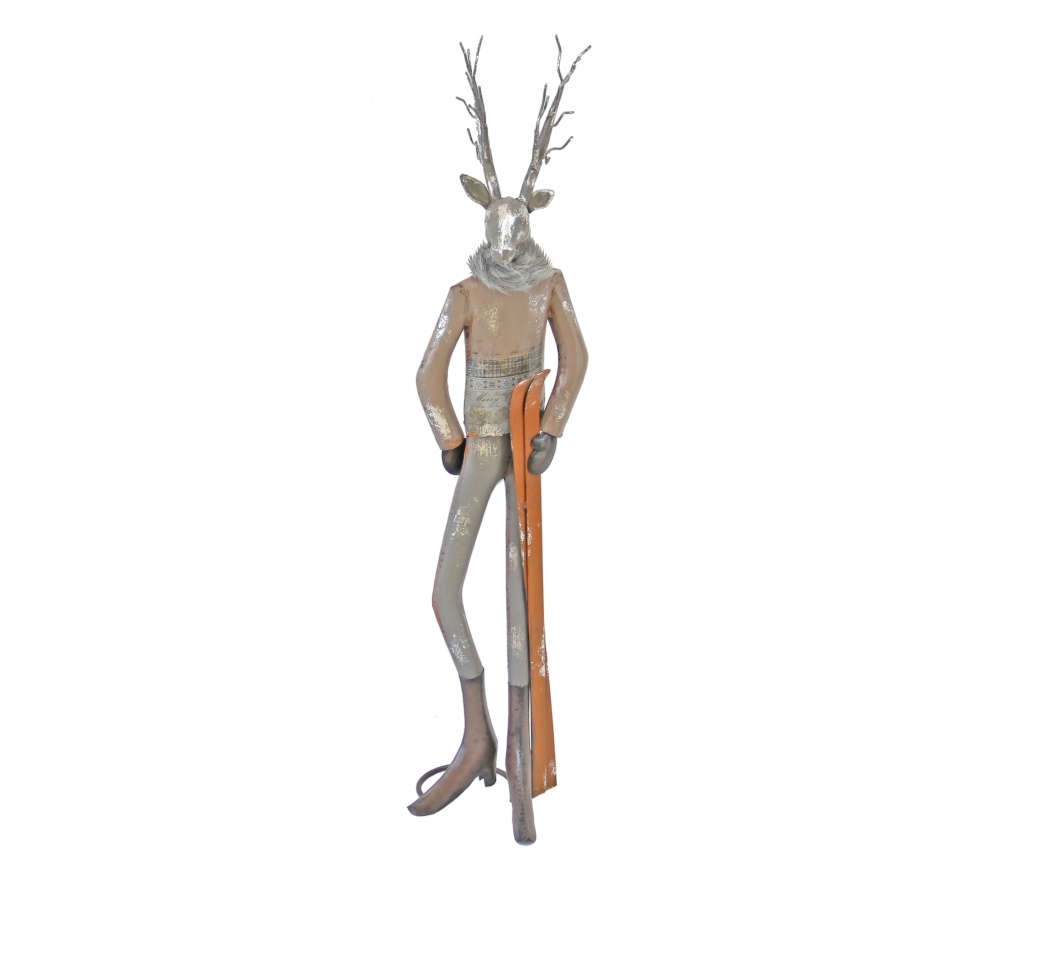 Kovový jelen s lyžemi 77,5 cmmateriál: kovbarva: šedá, bílá, béžová, oranžovározměry:výška 77,5 cmšířka 17,8 cmhloubka 19 cmNáš tip:Umístěte jelena na strategické místo ve vašem domově, aby přitáhl pozornost a dodal prostoru originální atmosféru. Šedobílá barva dodává jelenovi elegantní a...