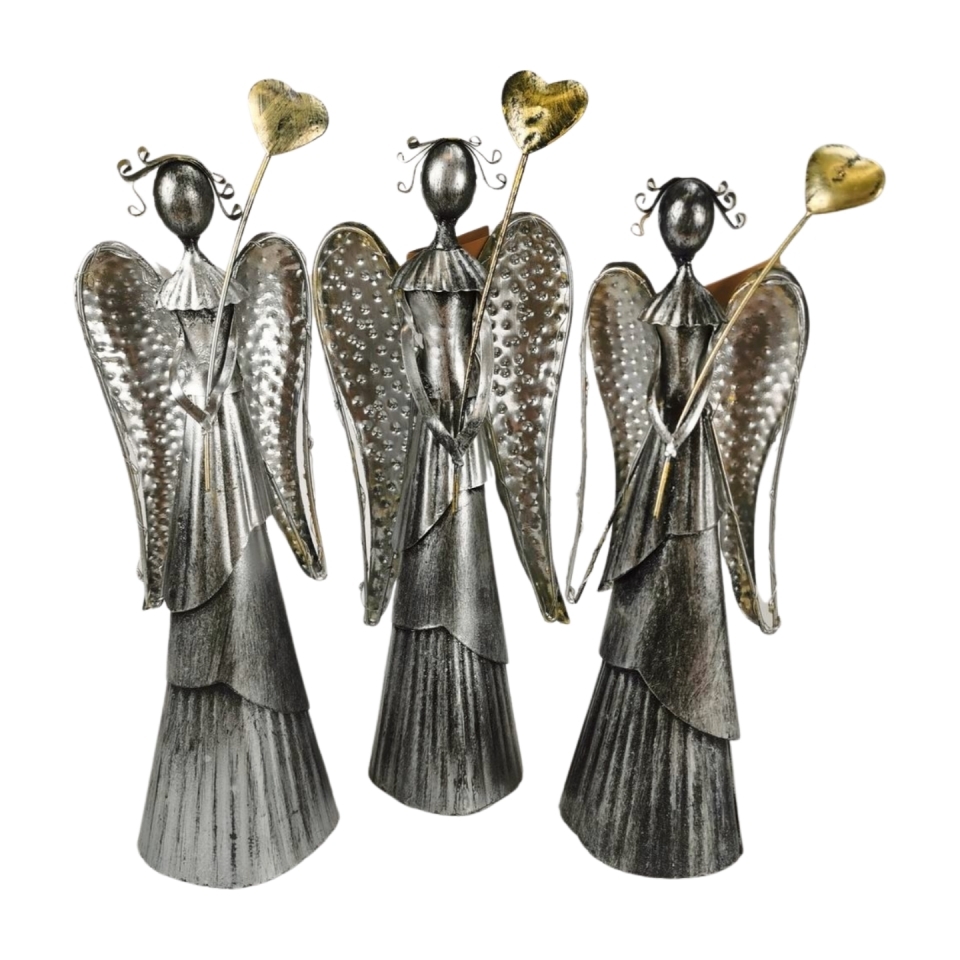 Sada 3 moderních plechových andělů se srdíčkem a LED osvětlením