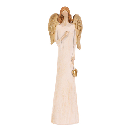 Anděl se zlatým srdcem - polyresin, béžový