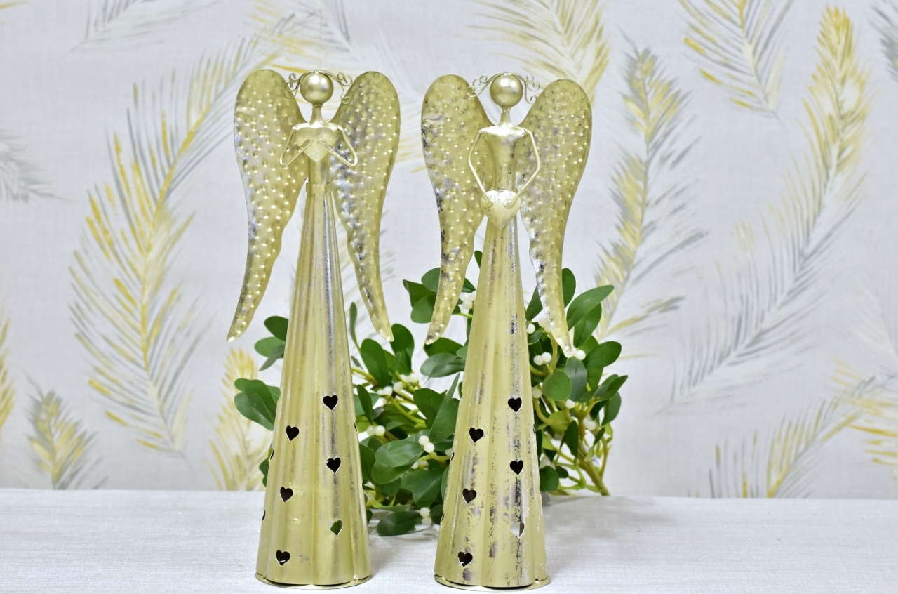 Plechový anděl Hearts svícen, champagne 38,5 cm