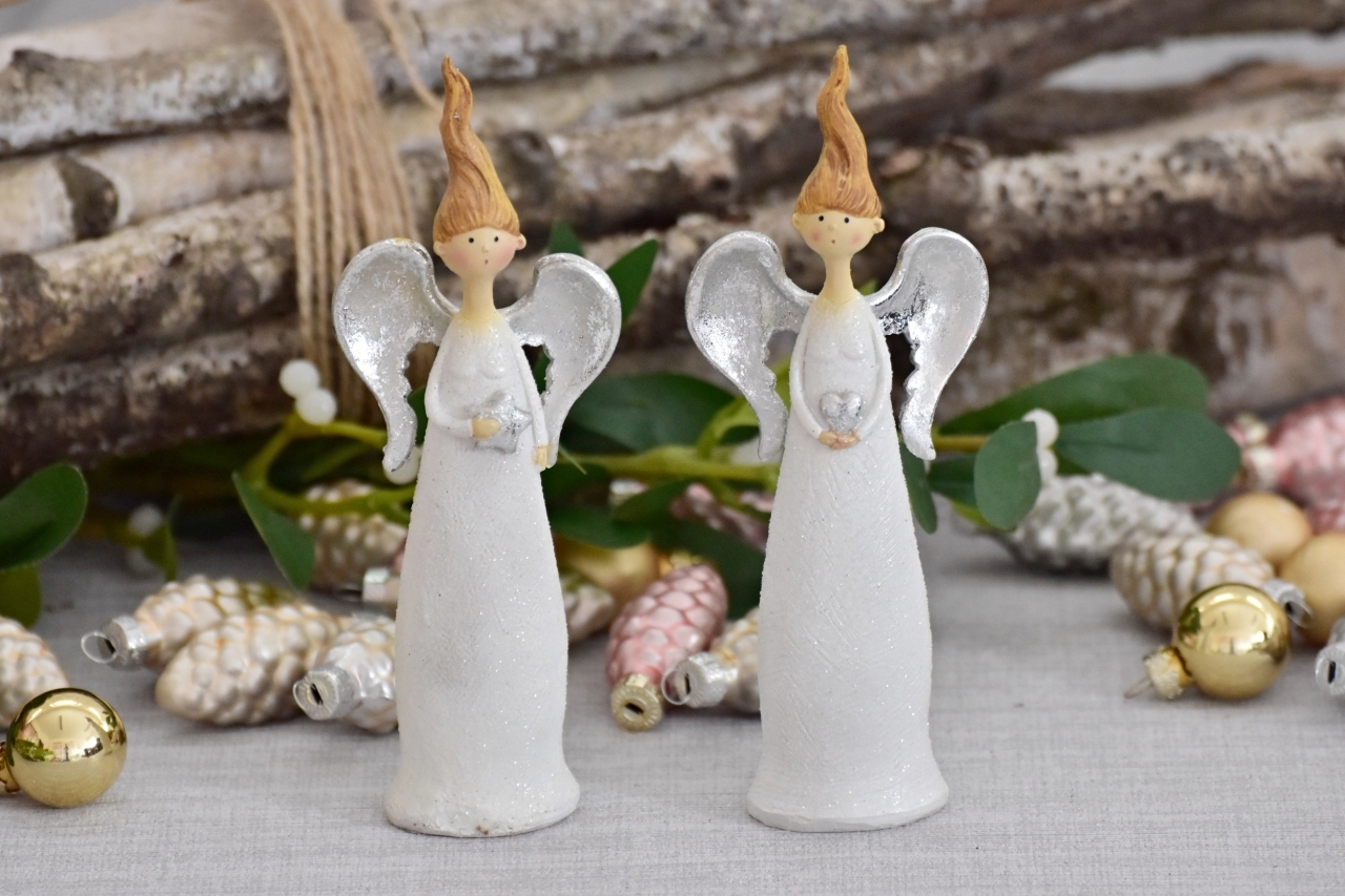 Dekorativní polyresinový anděl se stříbrnými křídly. Andílci přináší do domova harmonii a klid. Můžete je také věnovat jako dárek nebo milou pozornost.