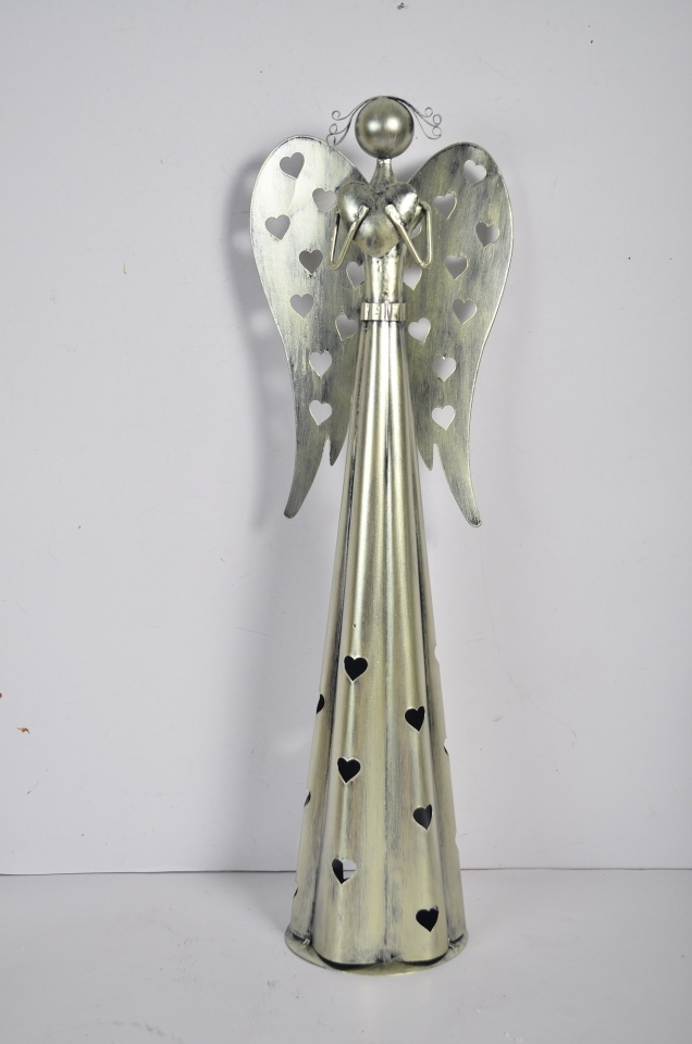 Romantický plechový andílek se srdíčky. Dekorace do interiéru, která dělá radost po celý rok. V zadní části sukýnky je otvor na čajovou svíčku.
