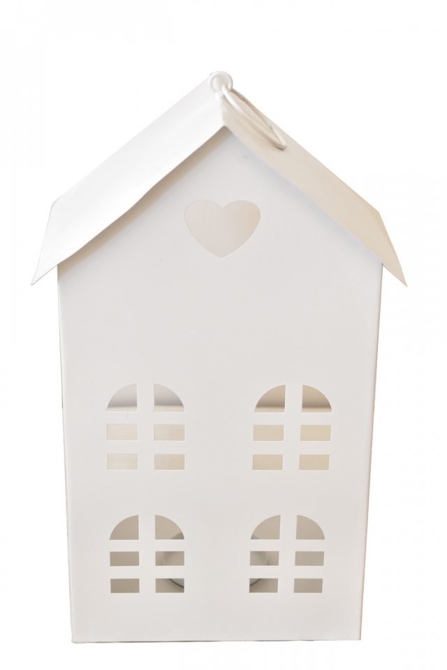 Kovový domeček na čajovou svíčku, bílý, 37,5x23,5x17,5 cm