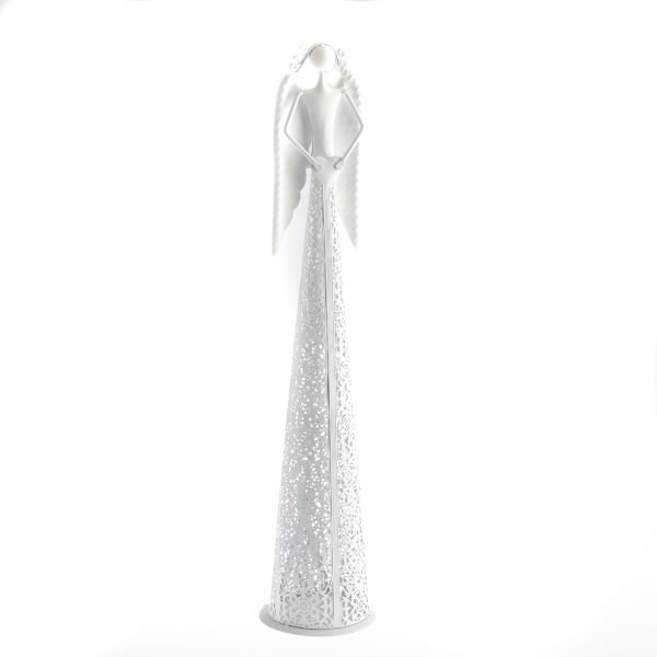 Bílý kovový anděl s krajkovanou sukní pro čajovou svíčku - se srdcem 0/8