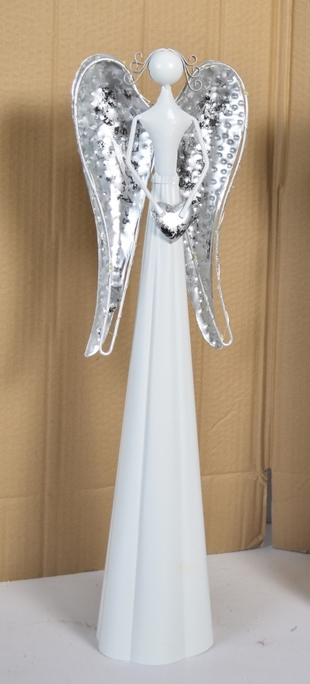 Plechový anděl Mary se stříbrnými křídly 66,5 cm
