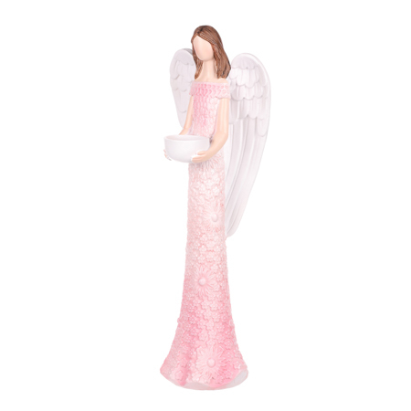 Anděl z polyresinu, svícen, barva růžová