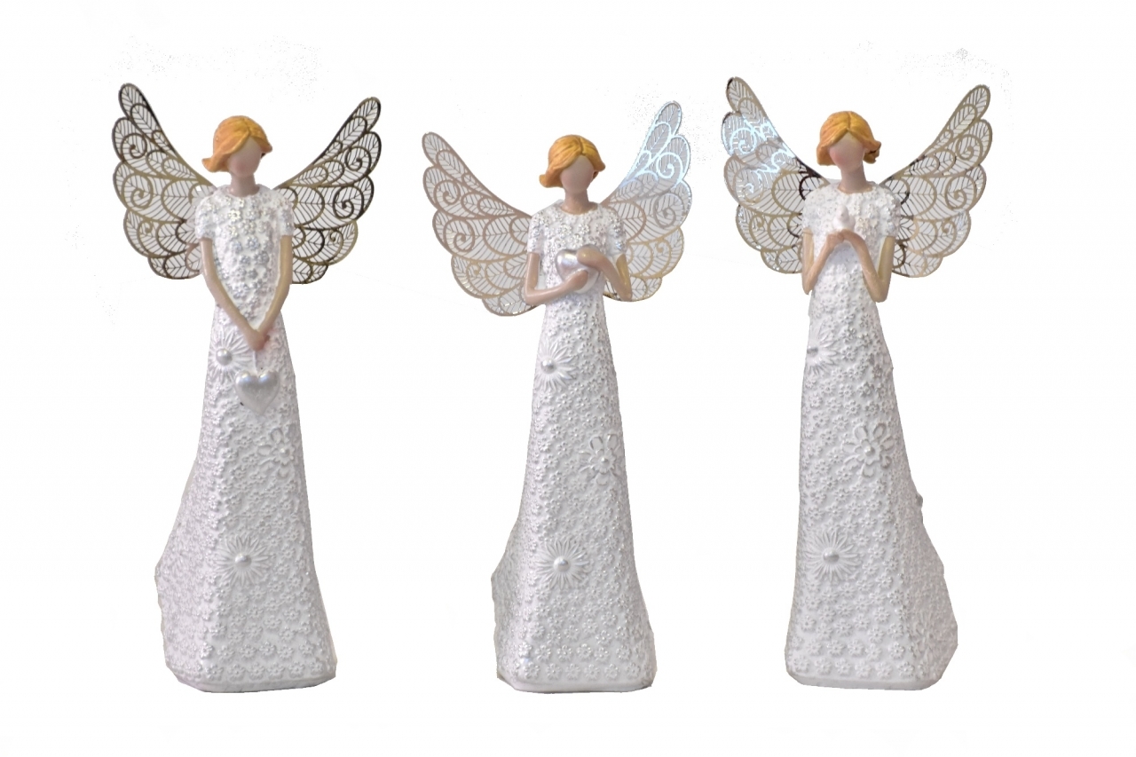 Anděl Flo Silver 16 cm, kovová křídla