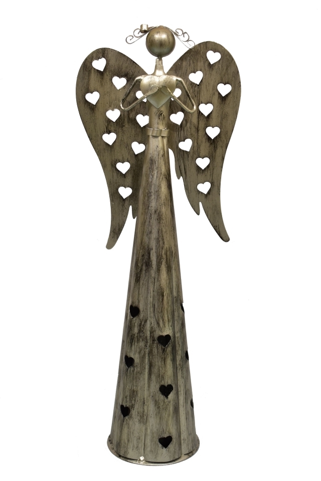 Plechový srdíčkový anděl na čajovou svíčku 53 cm