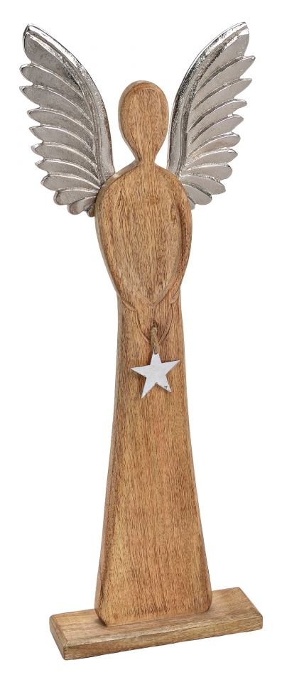 Dřevěný andílek Mango s kovovými křídly. Andílci do domu přináší štěstí a navodí příjemnou a pohodovou atmosféru.