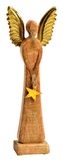 Dřevěný anděl Mango gold s kovovými křídly 34x12x6 cm