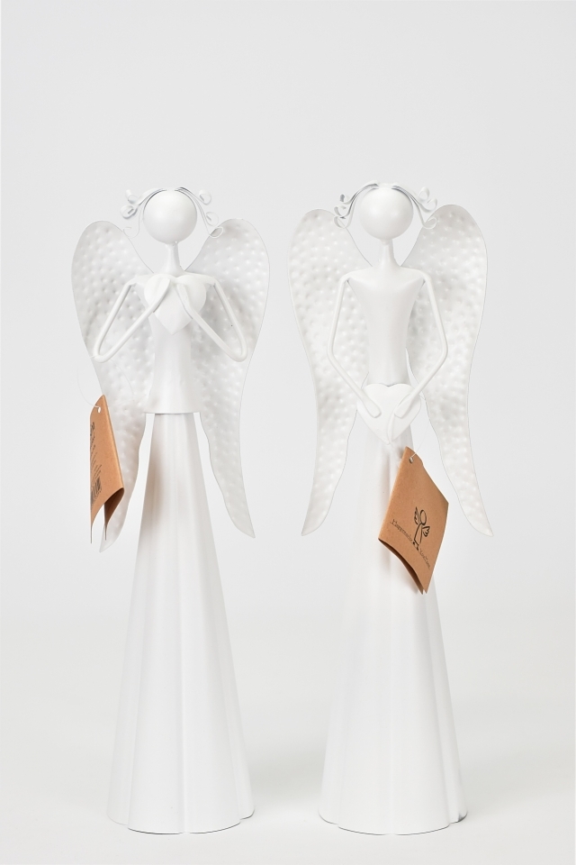 Plechový anděl, moderní netradiční dekorace která dodá vašemu interiéru nový náboj. Tento anděl svírá ve svých rukách srdíčko.