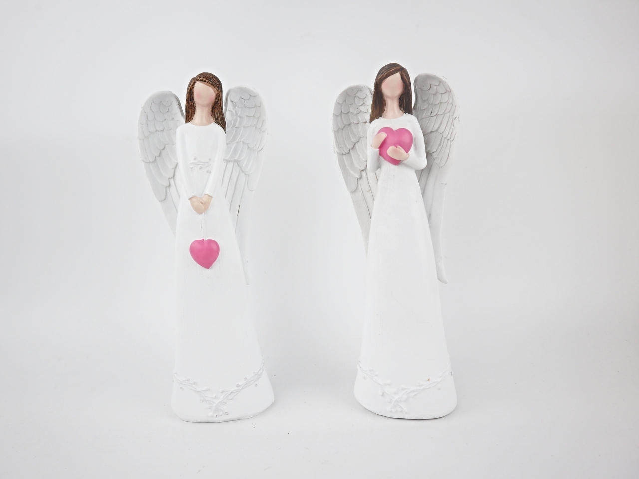 Dekorativní andílek s růžovým srdíčkem a reliéfem.