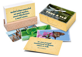- Dřevěný stojánek umožňuje elegantní vystavení kartiček a snadný přístup k nim.