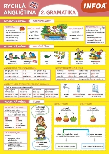 Tato publikace obsahuje to nejdůležitější z anglické gramatiky zpracované do přehledných tabulek, které jsou doplněny názornými ilustracemi. Jsou zde zpracovány tyto gramatické okruhy: množné číslo podstatných jmen, členy, zájmena, číslovky, slovesa, slovesné časy, předložky a spojky. Gramatické...