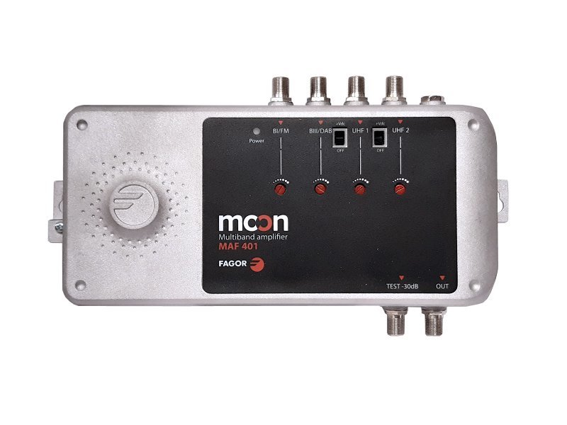 Zesilovač je vyroben v ZAMAC odlitku. Zesílení všech vstupů je regulovatelné. Do vstupu UHF2 lze pustit napájení pro předzesilovače +24 V/ 100mA.