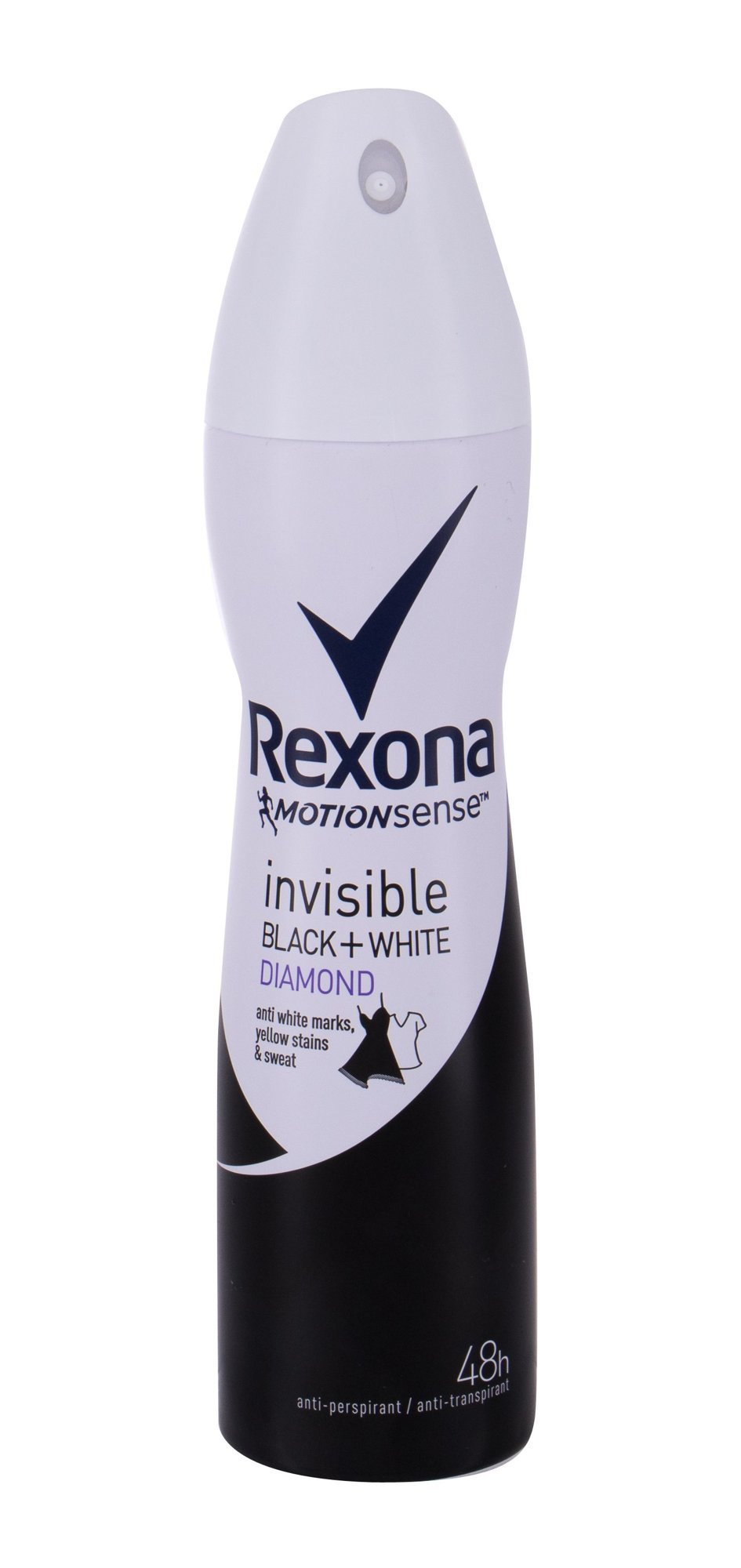 Antiperspirant Rexona Motionsense™ Invisible Black + White poskytuje efektivní neviditelnou ochranu proti pocení, aniž by zanechal skvrny na vašem oblečení.
