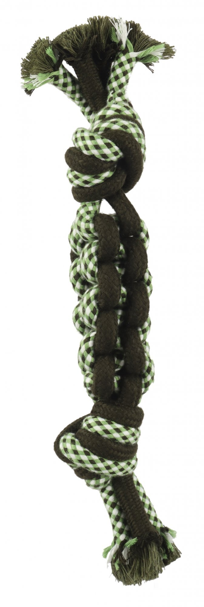 Praktický uzel je dostatečně pevný, aby vydržel aktivní hry, přesto je bavlna příjemná na dotek a bezpečná. Díky své velikosti se snadno drží v tlamě a zároveň umožňuje efektivní čištění zubů během hry. Udělejte radost svému mazlíčkovi hračkou, která kombinuje praktičnost a odolnost.