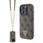 Guess PU 4G Strass Triangle Metal Logo Zadní Kryt + Crossbody Popruh pro iPhone 16 Pro Max Brown