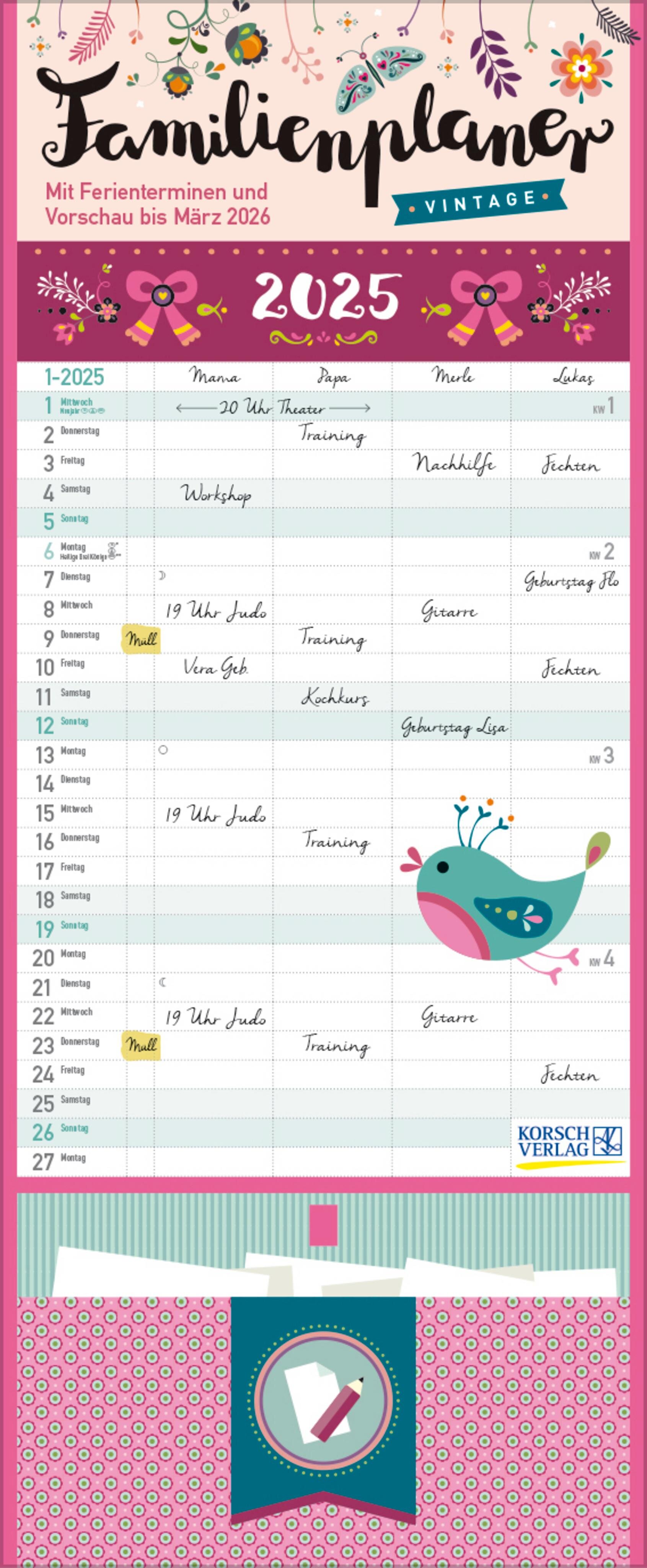 Familienplaner Vintage Zetteltasche 2025