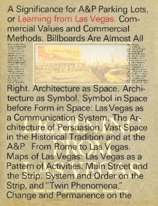 Upon its publication by the MIT Press in 1972, Learning from Las Vegas was immediately influential and controversial. The authors made an argument that was revolutionary for its time - that the billboards and casinos of Las Vegas were worthy of architectural attention - and offered a challenge...