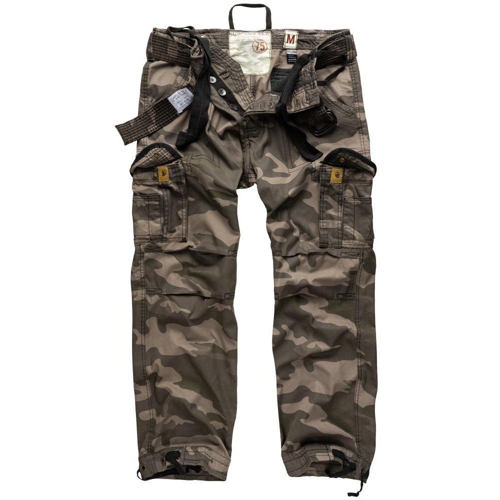 Absolutně nejkvalitnější řada prémiových kalhot od firmy SURPLUS: PREMIUM VINTAGE. Kalhoty z velmi lehkého a příjemného materiálu jsou předeprané a vypadají jako obnošené. Velmi pevné švy. Vyztužené stehenní kapsy. Kožené doplňky. Opasek součástí.
