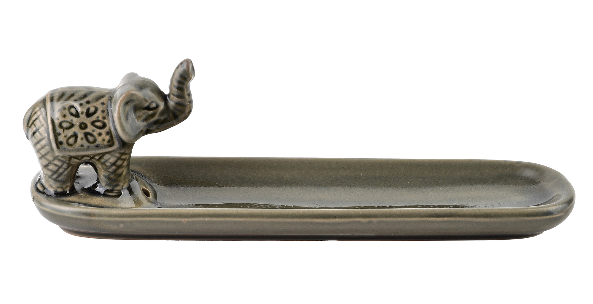 Ceramiczna podstawka ze słonikiem w kolorze zielonym pod kadzidło o wymiarach 19,5x5x6cm cm to elegancki i praktyczny dodatek do wnętrza, który doskonale łączy estetykę z funkcjonalnością. Wykonana z wysokiej jakości ceramiki, cechuje się trwałością i odpornością na wysokie temperatury, co czyni ją idealnym wyborem do codziennego użytku podczas palenia kadzideł.Podstawka posiada smukły, prosty kształt, który nadaje jej minimalistyczny charakter. Jej kompaktowy rozmiar sprawia, że łatwo znaleźć dla niej miejsce zarówno na stoliku, półce, jak i parapecie. Gładka powierzchnia ceramiki nie tylko dodaje jej elegancji, ale również ułatwia czyszczenie po użyciu. Dzięki precyzyjnemu wykonaniu zapewnia stabilność i bezpieczeństwo, zbierając popiół z kadzidła, co pozwala utrzymać otoczenie w czystości.Uniwersalny design podstawki sprawia, że pasuje do różnych stylów wnętrz . od nowoczesnych po bardziej klasyczne czy boho. To doskonały wybór dla osób ceniących atmosferę spokoju i relaksu, jaką tworzą zapachy kadzideł, a jednocześnie dbających o estetykę swojego otoczenia. wymiary: 19,5x5x6cm waga: 226g zapakowany jendostkowo w brown box