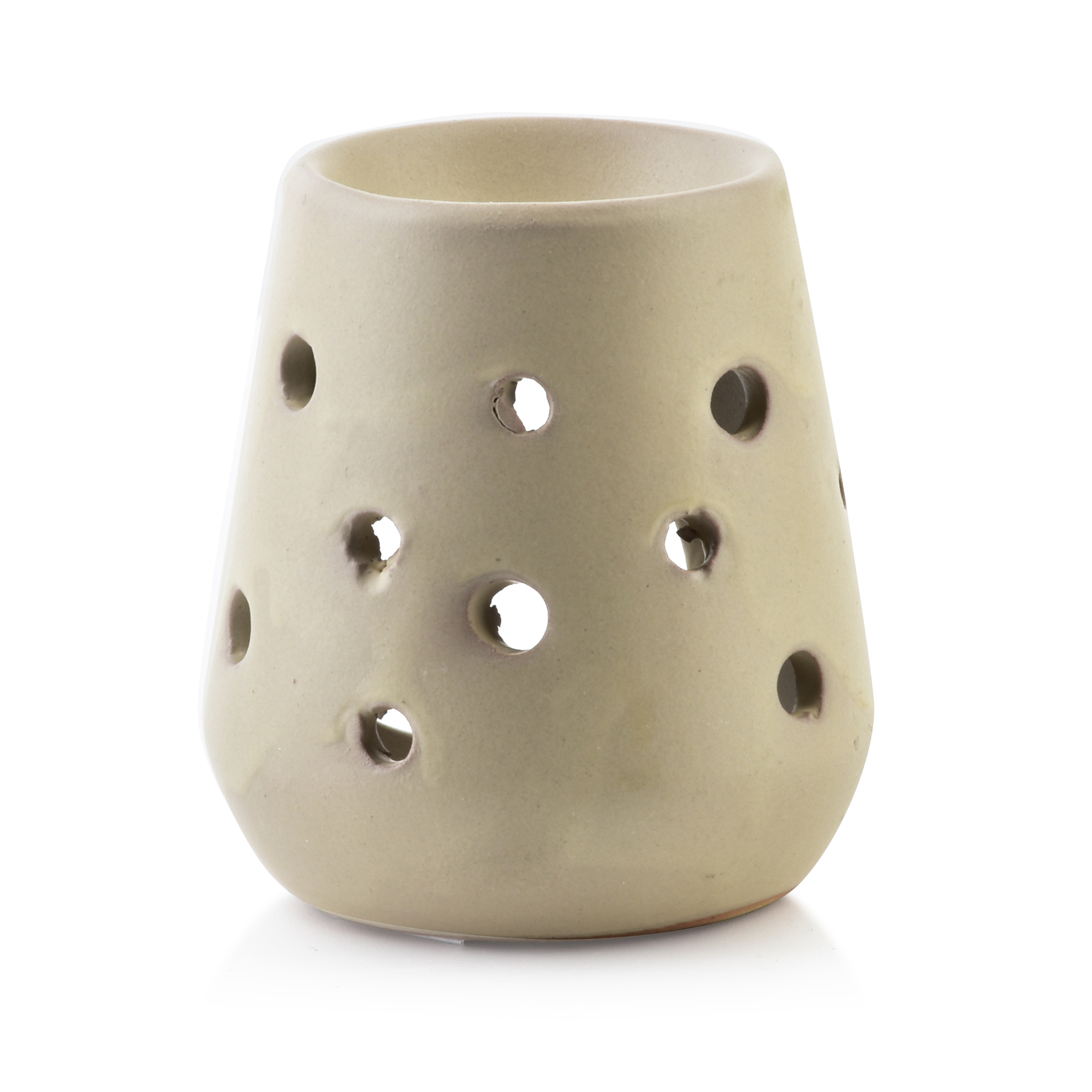 Ceramiczny kominek na olejek zapachowy. Służy do aplikacji olejków i wosków zapachowych. Odpowiednia wysokość kominka oraz pojemna miseczka sprawiają, że kominek idealnie nadaje się do wosków zapachowych oraz zapewnia komfort w korzystaniu z olejków zapachowych. Na górze kominka należy umieścić wosk lub olejek zapachowy, a w dolnej części należy umieścić małą świeczkę typu tealight w celu podgrzania i uzyskania zapachu. W miseczce można roztapiać cały wosk lub jego fragment, nie należy dodawać do wosku wody. WYMIARY: ŚREDNICA 5cm WYSOKOŚĆ 7cm brak opakowania jednostkowego opakowanie wewnętrzene-12szt
