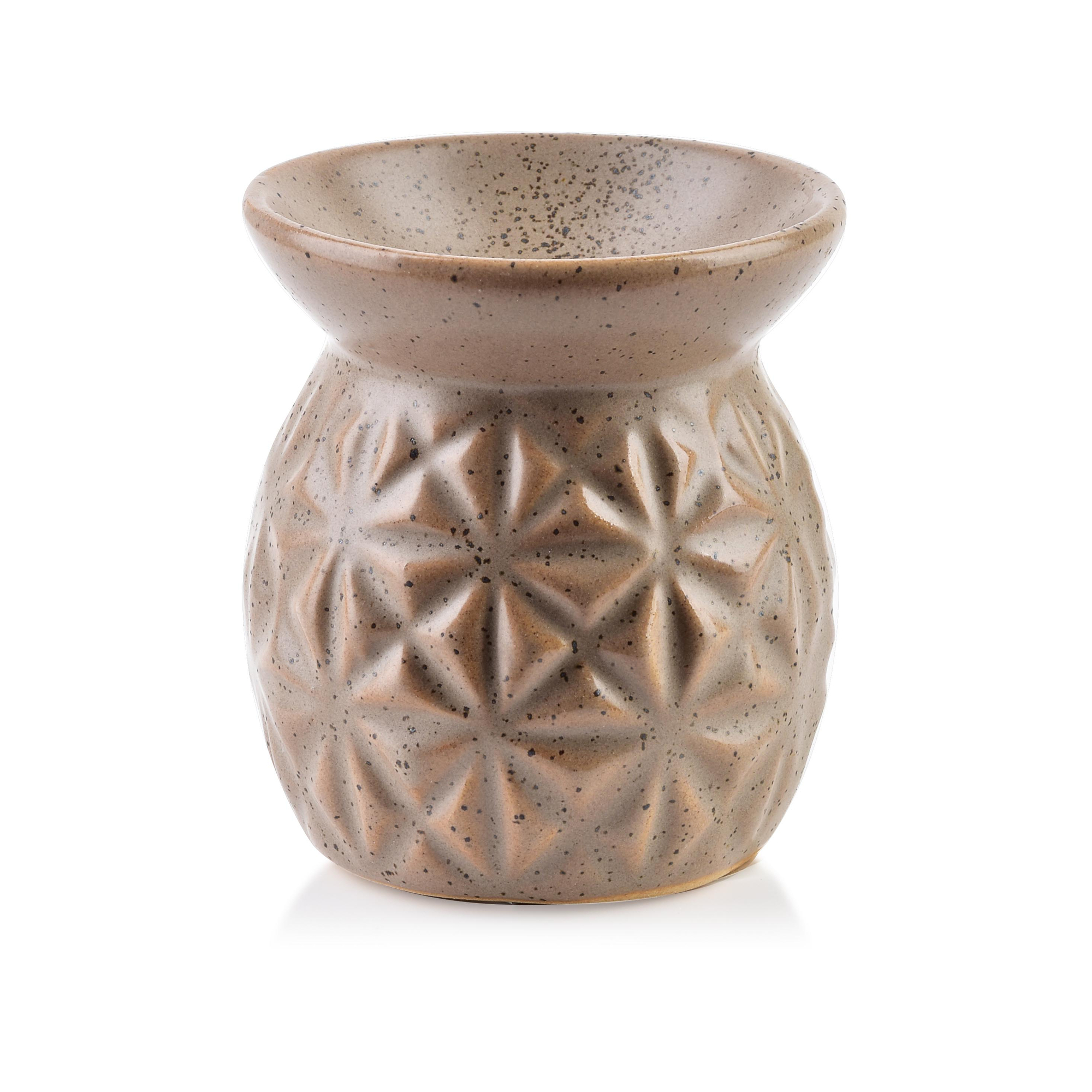 Ceramiczny kominek na olejek zapachowy. Służy do aplikacji olejków i wosków zapachowych. Odpowiednia wysokość kominka oraz pojemna miseczka sprawiają, że kominek idealnienadaje się do wosków zapachowych oraz zapewnia komfort w korzystaniu z olejków zapachowych. Na górze kominka należy umieścić wosk lub olejek zapachowy, a w dolnej części należy umieścić małą świeczkę typu tealight w celu podgrzania i uzyskania zapachu. W miseczce można roztapiać cały wosk lub jego fragment, nie należy dodawać do wosku wody. wymiar: 6,5x5,5xh7,5cmwaga: 130gbrak opakowania jednostkowegoinner 12sztkarton zbiorczy 120szt