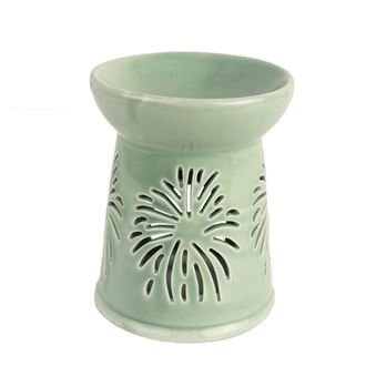 Krásná aromalampa. Aromalampa je výborná pro odpařování éterických olejů rozpuštěných ve vodě či voskových aromakapslí. Aromalampa poslouží nejenom jako difuzér pro osvěžení vzduchu, ale také je pěknou vkusnou dekorací do každého interiéru. Rozměry : průměr 10,5 cm, výška 13,6 cm. Barva : zelená....