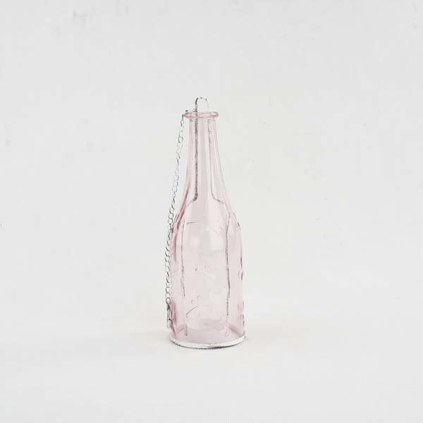 Závěsný skleněný svícen - fialové barvy - tvar láhve 0/24