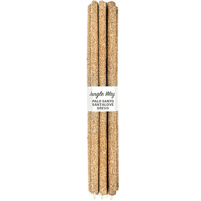 Prémiové vonné tyčinky Jungle Way jsou ručně mleté i svíjené peruánskými domorodými kmeny ze 100% přírodních ingrediencí, bez přidaných aditiv. Základní složkou tyčinek je posvátné dřevo Palo Santo, jež je získáváno výhradně ze spadlých větví, jeho užitím tedy není podporováno drancování a kácení tohoto ohroženého skvostu. Druhou surovinou je santalové dřevo, které je považováno za symbol životní síly. Kombinace Palo Santa a santalového dřeva má silně očistné účinky jak na prostor, tak na bytosti v něm. Harmonizuje, vyrovnává energie, chrání proti negativním vjemům, navozuje klid, reguluje stres a podrážděnost. Zároveň působí antibakteriálně a protivirově, uvolňuje dýchací cesty při nachlazení a mírní bolesti hlavy. Zapalte si tyčinku a nechte se unášet okouzlující vůní amazonského pralesa s jemně sladkým nádechem santalového dřeva po celých 90 minut.