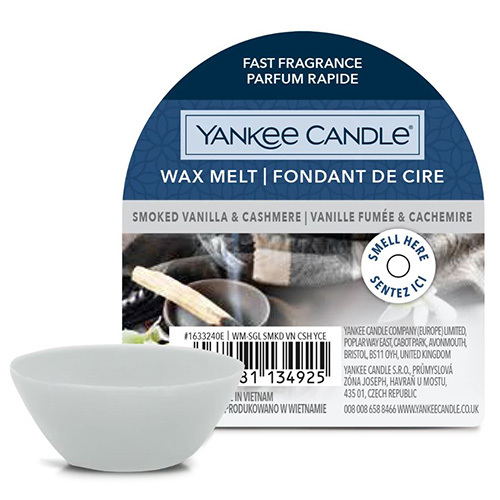 Vonný vosk Yankee Candle, Kouřová vanilka a kašmír, 22 g