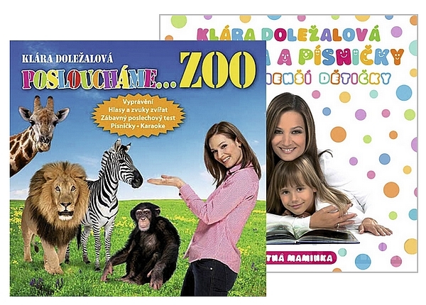 Unikátní komplet pro děti od 3 let! Moderátorka Klára Doležalová učí děti nejznámější národní písničky, lidová říkadla a seznamuje je s hlasy zvířátek ze ZOO. Říkadla a písničky pro nejmenší dětičky CD Tradiční česká říkadla (Paci, paci, Ententýky, Polámal se mraveneček), známé národní písničky (Já do lesa nepojedu, Kočka leze dírou, Pec nám spadla) namluvila a s dětmi nazpívala herečka a moderátorka Klára Doležalová. S některými popěvky (Zlatá brána, Kolo, kolo mlýnský, Halí belí ...) jí pomohla dcera Natálka. Posloucháme... ZOO CD Zábavná a poučná zvuková procházka po ZOO seznamuje děti se zvířaty z celého světa. Moderátorka Klára Doležalová a dvě děti - Lucka a Tomáš - prožijí v napínavém příběhu den v zoologické zahradě a dozví se mnoho zajímavého o životě nejznámějších druhů zvířat. Nahrávka obsahuje množství autentických zvířecích hlasů a zvuků a díky tomu neustále poutá dětskou pozornost. Děti uslyší troubení slonů, řev lvů i vřískot opic. Dozví se, čím se živí tygři, proč jsou zebry pruhované a kolik váží slon. CD „ZOO“ v sobě spojuje dobrodružný příběh s naučnými prvky, obsahuje originální zvuky a také poslechový test, dětské písničky a jejich karaoke verze.