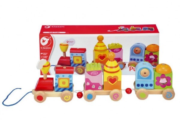 Vlak dřevo tahací 15ks 40x7,5x13cm 15 dílků v krabici 18m+