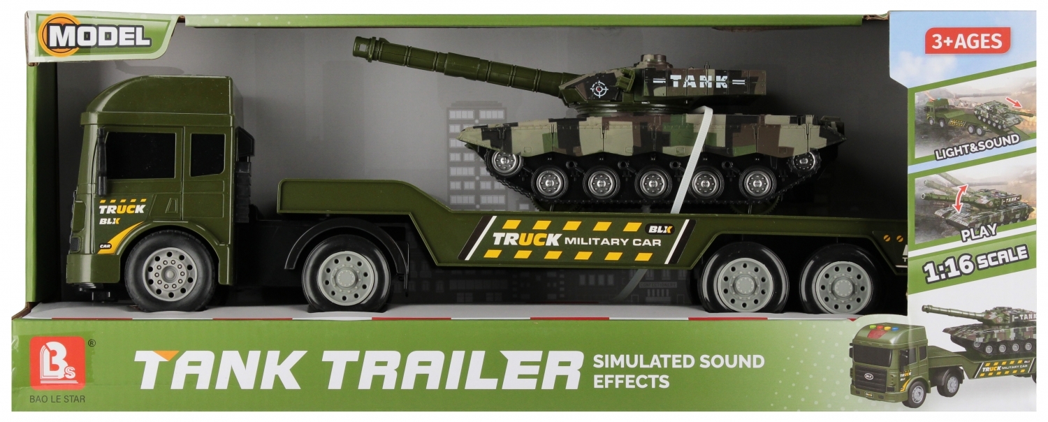 Zalety produktu: posiada efekty dźwiękowe oraz świetlne, posiada ruchome elementy oraz funkcję pull&back dzięki czemu po pchnięciu pojazdu do przodu kontynuuję jazdę samodzielnie. Wojskowy samochód do działań specjalnych od MEGA CREATIVE Zawartość zestawu: samochód wojskowy, czołg. Całość wykonana z plastiku oraz gumy. Wymiary/waga/baterie: wymiary produktu dł. x wys. x gł. cm : 42x13x10, wymiary opakowania dł. x wys. x gł. cm : 45x18x12, waga produktu bez opakowania kg : 0,42 kg, waga produktu w opakowaniu kg : 0,58 kg, wymaga zasilania bateriami 2 x AAALR03-nie załączono do zestawu. Zabawka przeznaczona dla dzieci w wieku: 3 . Pakowana w kartonik z otwartym okienkiem. W kartonie zbiorczym po 20 szt.