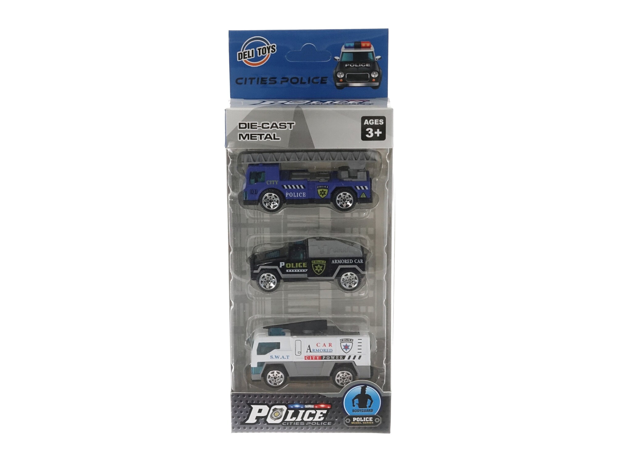 Sada 3 policejních aut, kovová; 18,5x9x4cm, W/B