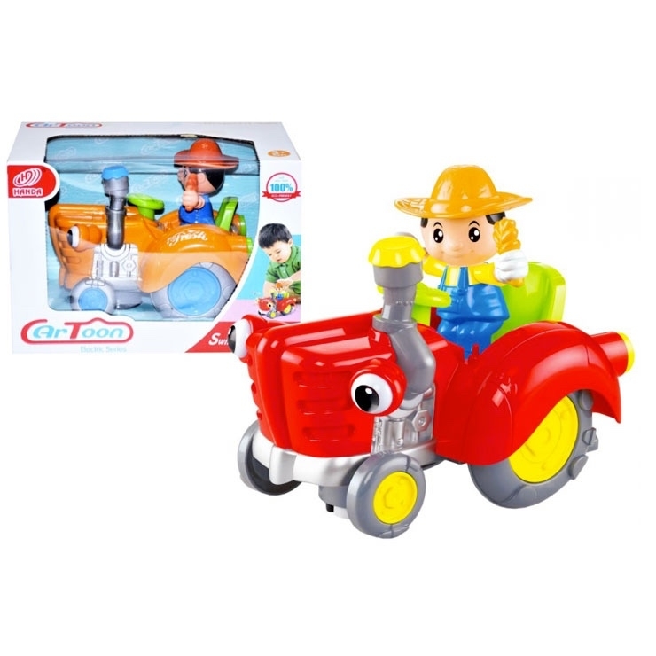 Farmář na traktoru na baterie