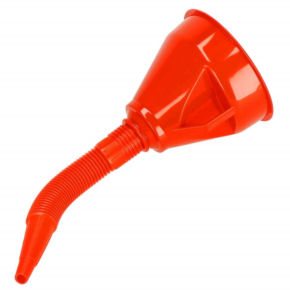 Praktcká nálevka s nastavitelnou hadičkou a sítkem. Flexibilita nastavení dle potřeby, odolný materiál s jasnou barvou. Odnímatelné prvky, snadné užívání. Vhodný doplněk do kuchyně, koupelny, garáže nebo dílny.