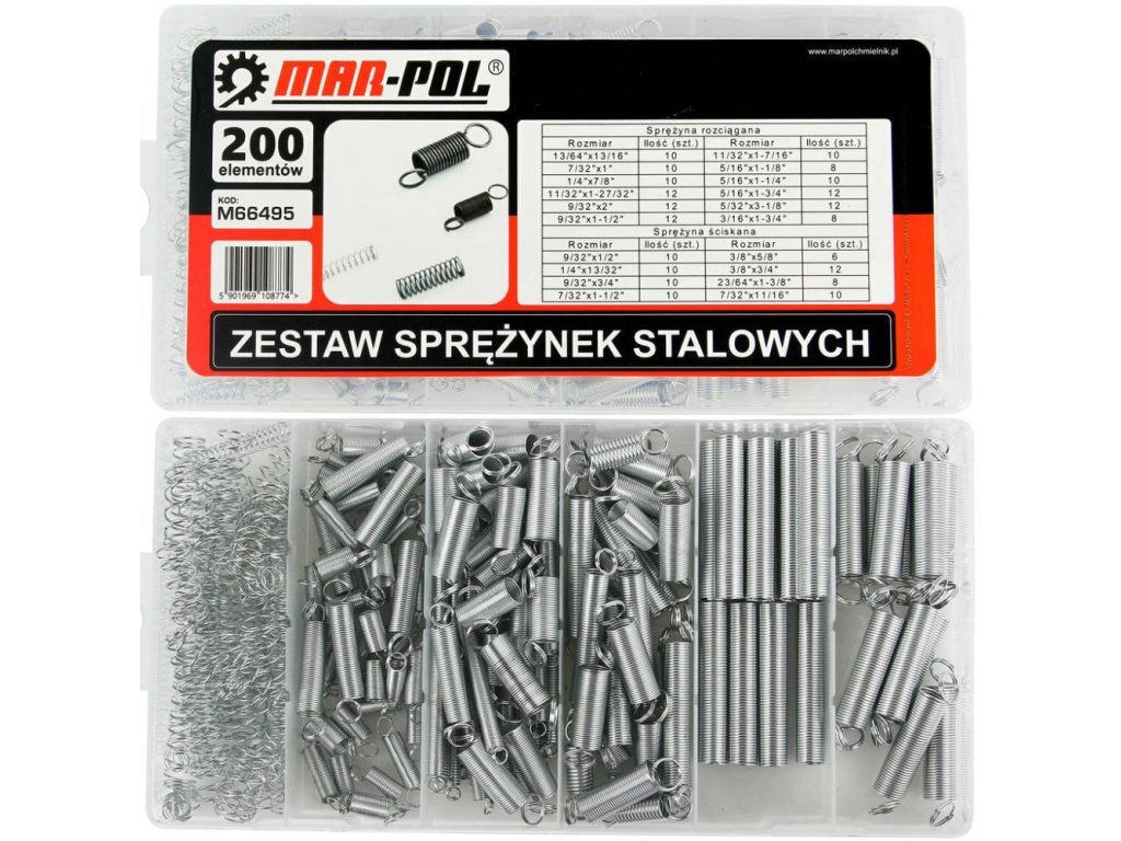 Sada ocelových pružin 200ks umístěná v plastovém kufříku s přihrádkami.