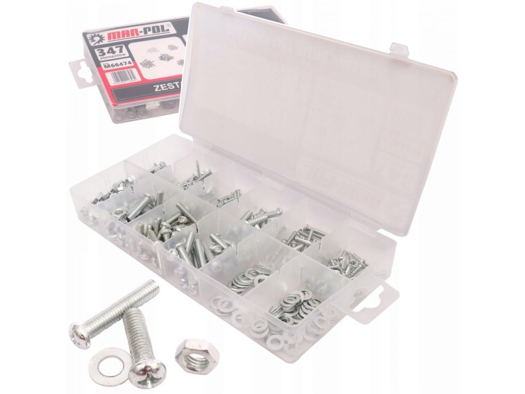 Sada 347 ks šroubů a matic uložena v praktickém boxu.