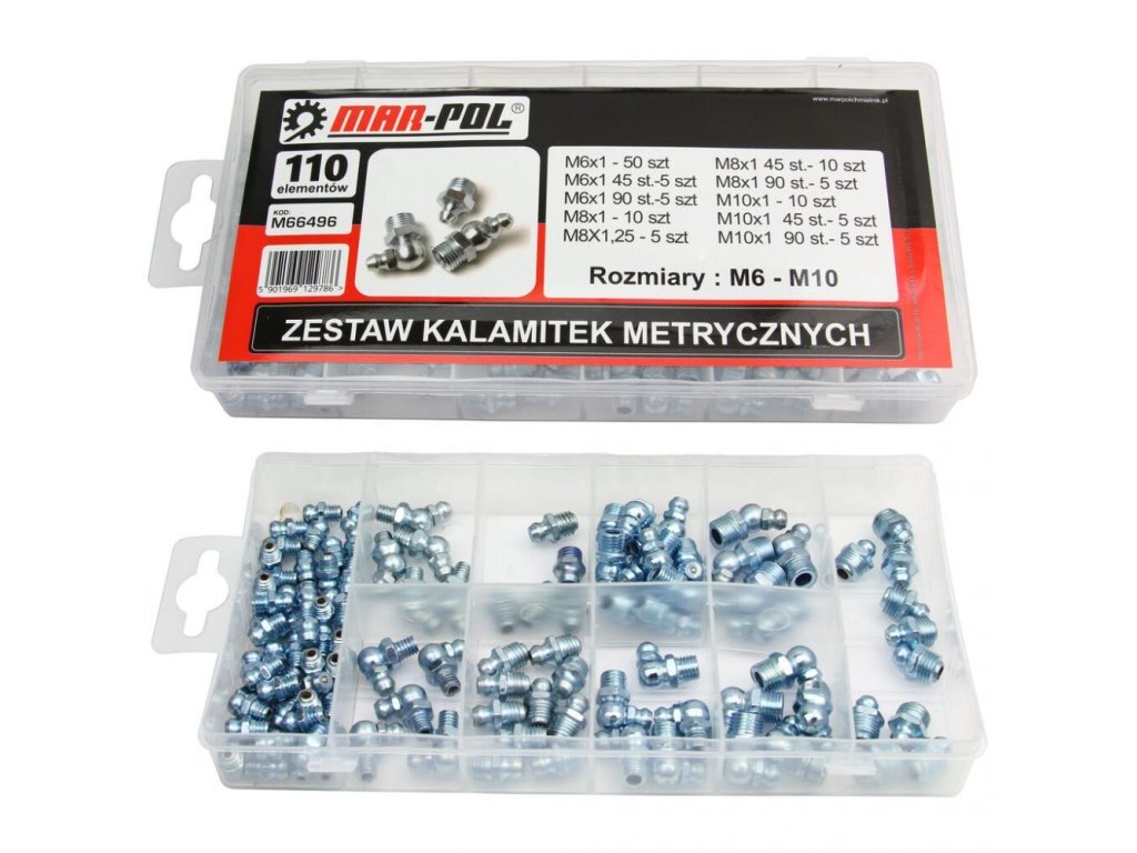 Sada 110ks mazacích hlavic MAR-POLBohatá sada mazacích hlavic v plastovém pouzdře, které jsou nezbytné pro správné fungování mechanismů, jejichž práce je založena na dlouhodobém provozu ložisek, která pro správnou funkci vyžadují další množství maziva.Sada obsahuje:M6x1 - 50 ksM6x1 45° - 5... číst celé