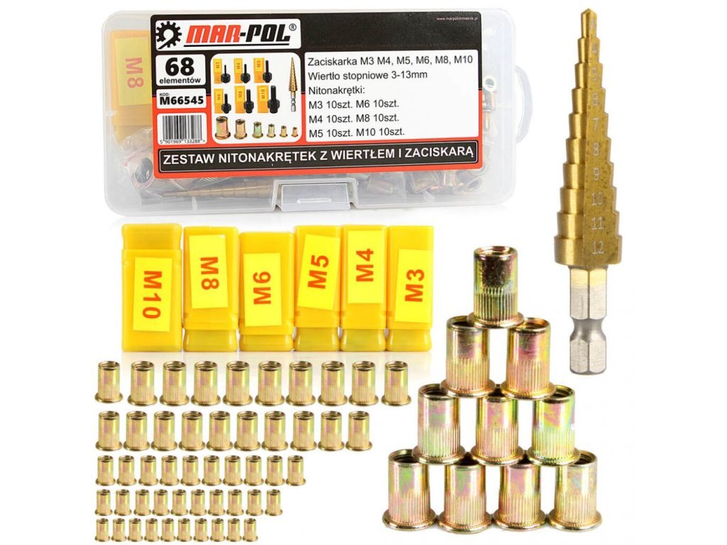 Nýtovací matice, nýtovací trny M3 - M10, se stupňovitým vrtákem, sada 68 ks MAR-POL
